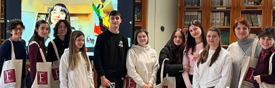 Im Anschluss gab es eine kleine Schulführung, wo Anna und ich nicht nur einzelne Räumlichkeiten wie den Theaterraum oder die Sporthalle gezeigt bekamen, sondern auch viele herzliche Personen im Schuldienst kennenlernten. Dabei wurde deutlich, dass in Italien nicht nur Lehrkräfte an Schulen, sondern auch weitere Berufsgruppen wie beispielsweise der technische Assistent tätig sind. Der technische Assistent ist für praktische Versuche im Physik- und Chemieunterricht verantwortlich und ergänzt damit den eher theoretisch konzipierten Unterricht der regulären Fachlehrkraft. Der Rundgang sorgte dafür, dass das Eis gebrochen war und die italienischen Schüler*innen Anna und mich mit Fragen zum Mannlich-Gymnasium löcherten. Dabei zeigten sie sich vor allem von den Erzählungen über die vielen Pausen, die man als Oberstufenschüler*in entweder in der Stadt oder in der schuleigenen Cafeteria mit frischem Essen verbringen kann, angetan. An unserer italienischen Partnerschule gibt es nämlich nur zwei Pausen von einmal 15 und einmal 10 Minuten am Schultag, welche die Schüler*innen nur auf dem Schulgelände, auf dem es keine Kantine gibt, verbringen dürfen.